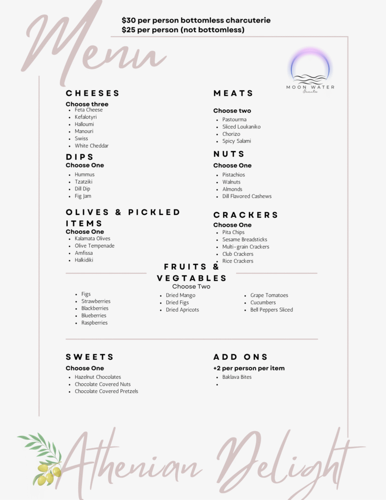 Mediterranean Inspired Charcuterie Menu
