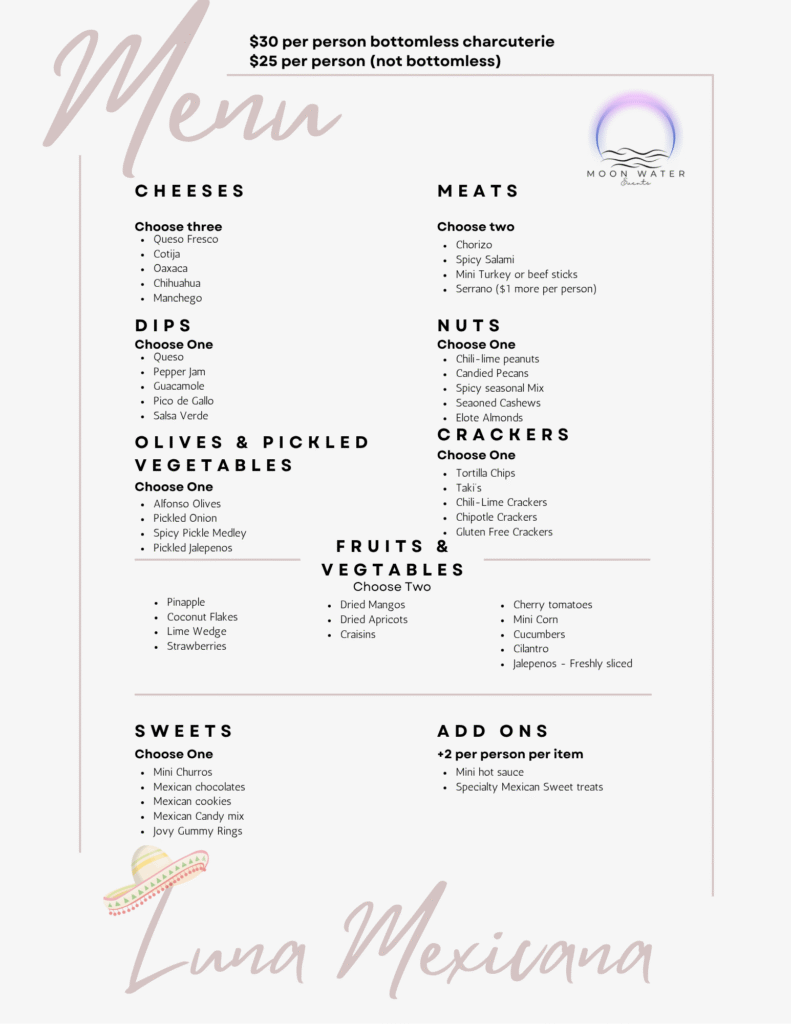 Mexican Inspired Charcuterie Menu