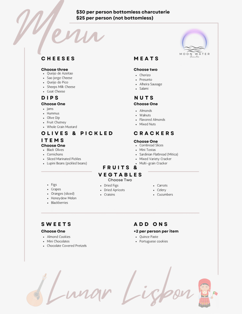 Portuguese Inspired Charcuterie Menu