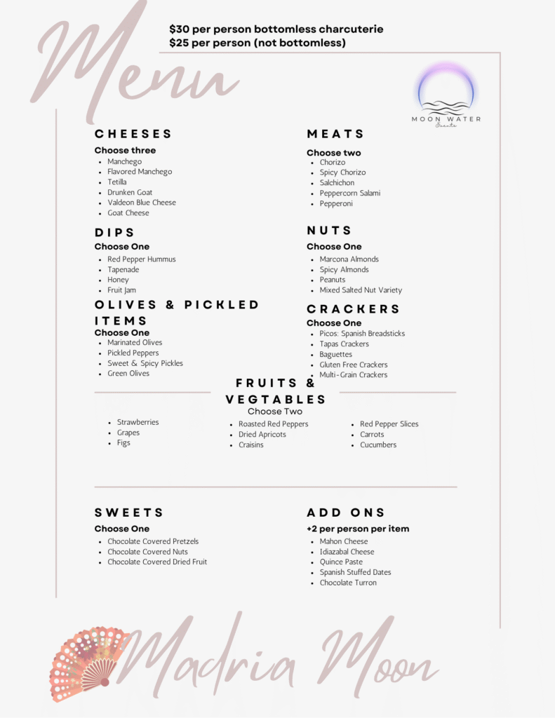 Spanish Tapas Inspired Charcuterie Menu