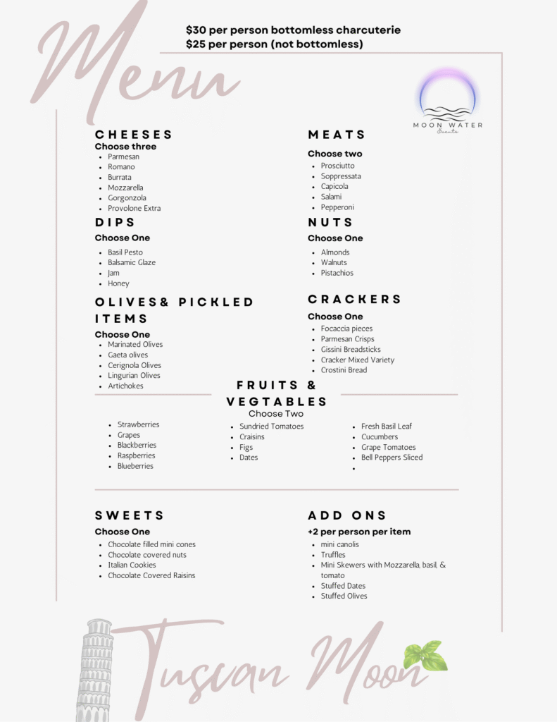 Italian Inspired Charcuterie Menu